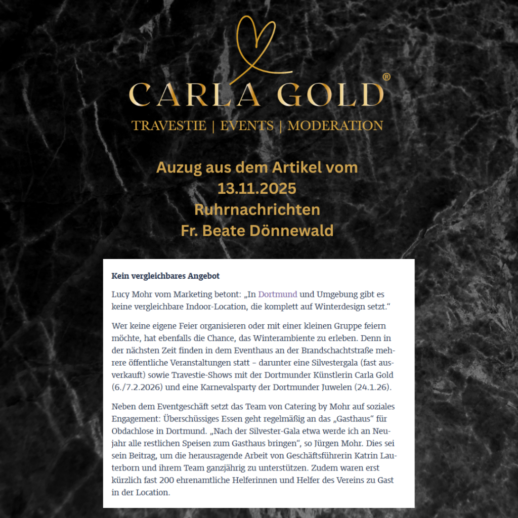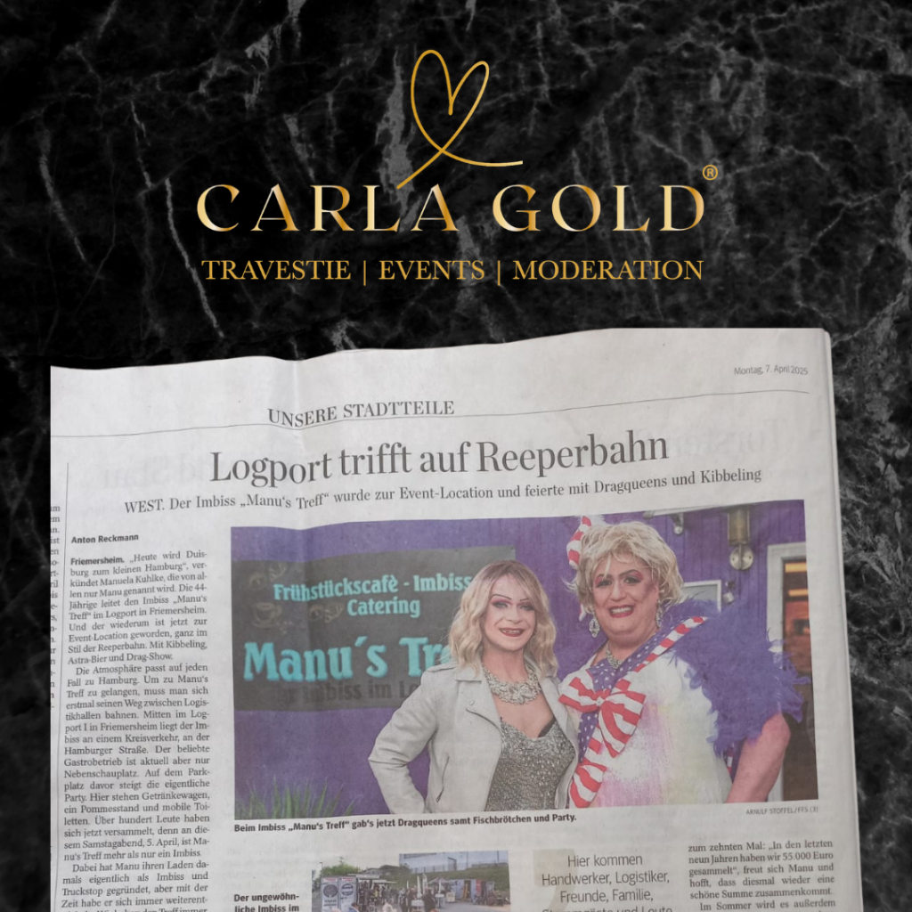 Carla Gold als Teil der Eve Champainge Show in Duisburg in der Presse im April 2025